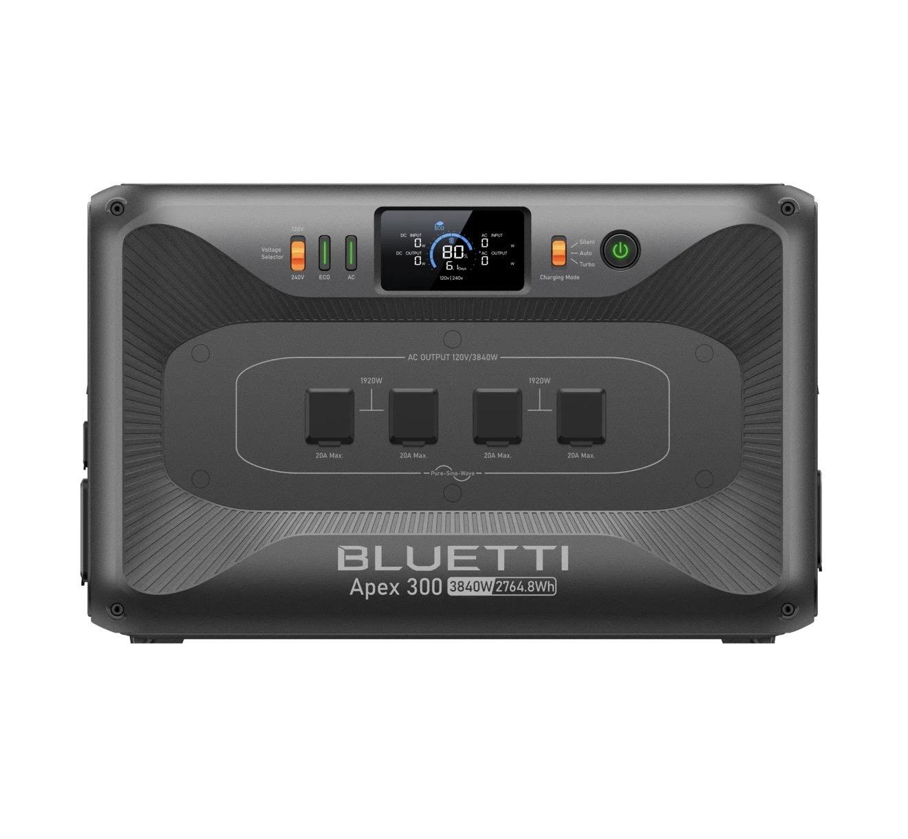 The Bluetti Apex 300 is a powerful, versatile, and reliable portable power station designed for home backup, RV living, off-grid cabins, and emergency preparedness. With 3,840W of output and 2,764.8Wh of battery storage, it delivers clean, quiet, and long-lasting energy wherever you need it.